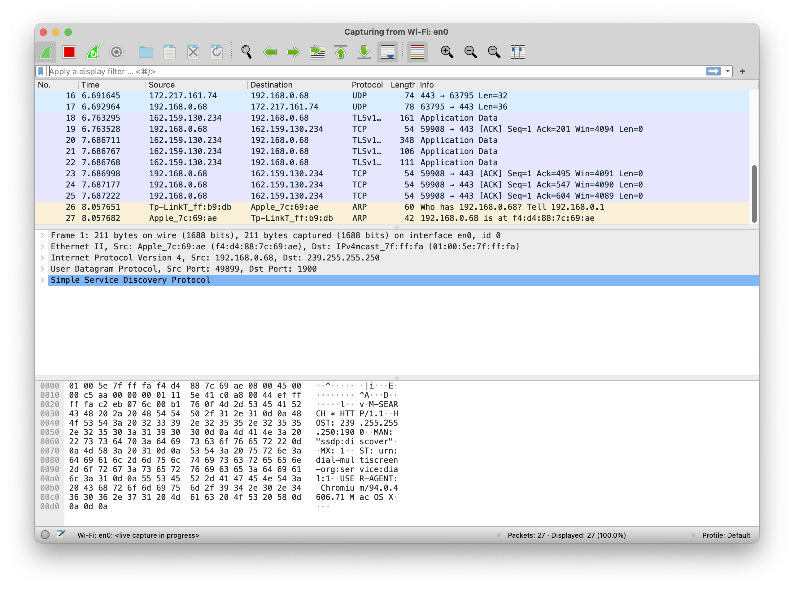 사실 전 wireshark를,, 알아요. HTTPS 프로토콜 특징 중 하나는 암호화된 데이터를 주고 받기 때문에 중간에 인터넷 요청이 탈취되더라도 그 내용을 알아보기 어렵다. 기존 HTTP 프로토콜은 요청이나 응답을 탈취하면 프로그램을 이용해 해당 요청으로 인해 전달되는 데이터의 내용을 확인할 수 있다.